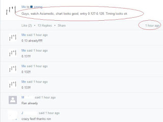 Yet another accomplishment today! We went long on AsiaMedic and made instant quick $$ within that few minutes. Went long at the 0.127-0.128 range and exited fast too. The timing was perfect at the moment when I gave the call to all my students in the SMMG club. For those who took action, the stock ran and rocket in instant minutes and based on my teachings, luckily you guys booked profits fast too!