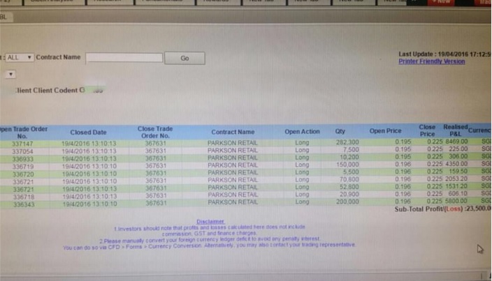 Just secured $23,500 in trading Parkson Retail. It was a good Contra trade with good timing and precision price in zipping in/out of the market. Parkson Retail was one of the hottest stock so far with humongous amount of buyers these past 2 days where the buying was fierce. Today the stock shot through a high of 0.235 before closing at 0.215. I am continuing to monitor this counter for the short term. This Friday, I will be doing a private sharing Whatsapp session for those who are interested to learn and receive alerts from me. Register below as registration is based on first come first serve. Details for the private sharing Whatsapp as per below: