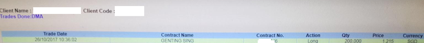 Longed Genting SP earlier on at 1.215 with 200 lots @ 10.36am before the super charged up where the price is now 1.255. The stock suddenly had an increased amount of buyers where the sellers were retreating which my student gave it a try. He's now rewarded with $7000 unrealized profits in 1 hr 30 mins for a small quick trade. I believe Genting is releasing some good news soon as the stock is bullish with strong buyers. I will look to buy at higher price with the right turning point.